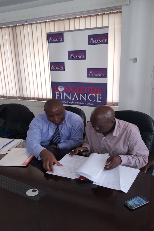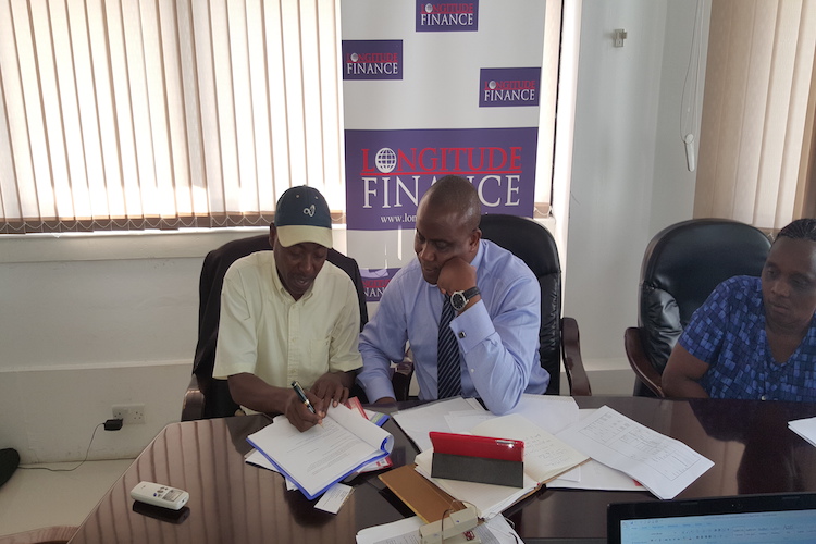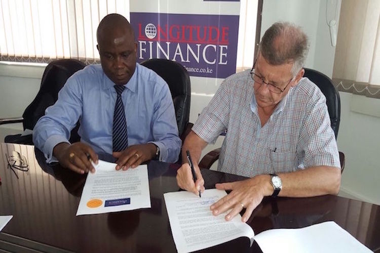 Michael Monari (L) - CEO of LOFIN and Peter Herrmann (R) - Team Leader of KUZA project signing a partnership agreement for collaboration in supporting its members with short term business loans and capacity building of how to manage their businesses profitably.